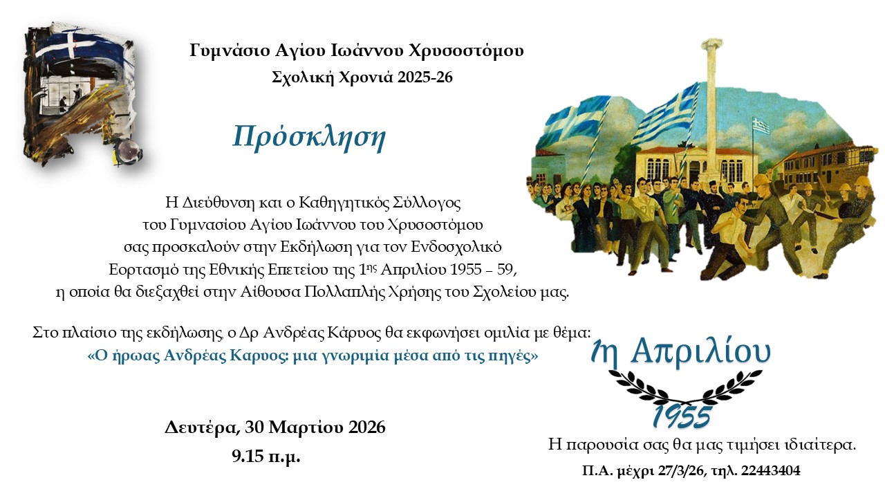 - Πρόσκληση στην εκδήλωση για τους εορτασμούς της Σημαίας και της Εθνικής Επετείου της 28ης Οκτωβρίου 1940